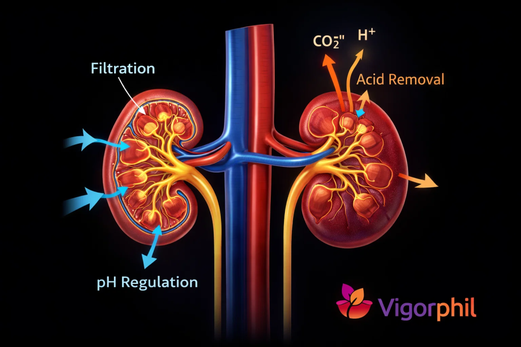 When blood becomes too acidic, kidneys deposit extra acid into the tubules for elimination. When blood becomes too alkaline, they retrieve acid from the tubules back into the bloodstream. This continuous monitoring happens without conscious thought.